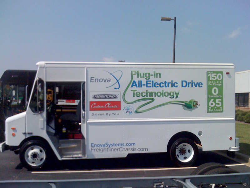 The Enova Ze’s zero emissions technology has captured the attention of some of the largest commercial OEMs and fleet operators in the world. Recently, Enova has partnered with Freightliner Custom Chassis Corporation (FCCC), to integrate and deploy this innovative technology with the MT-45 walk-in van chassis, with deployment to national fleet operator(s) in the first quarter of 2010.