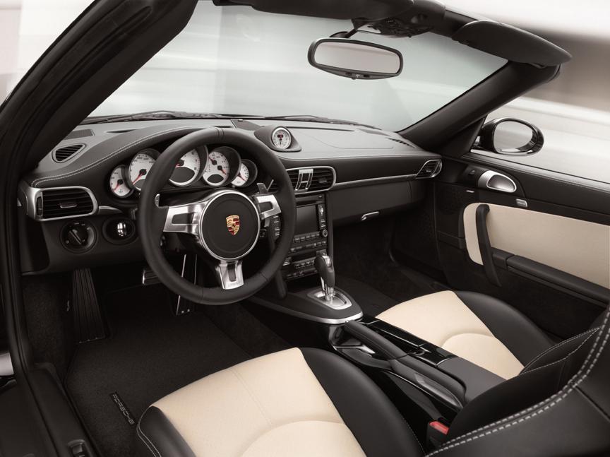 The supreme level of standard equipment including Dynamic Bending Lights, 19-inch wheels in RS Spyder design with central locking, a three-spoke sports steering wheel with gearshift paddles, adaptive sports seats, cruise control, a CD/DVD changer and exclusive twin-tone leather upholstery in Black/Crema or Black/Titanium Blue additionally underlines the outstanding class and calibre of this first Turbo S in five years.