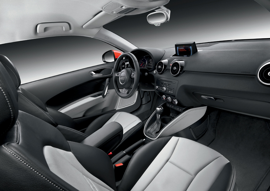 The interior of the A1 is also sporty and of high quality. Customers can customize numerous details to tailor the car to their personal tastes. Audi’s latest model has a broad portfolio of advanced technologies on board; its infotainment system sets new standards in the segment. The A1 is the first premium automobile in the small compacts class – a true, fully-fledged Audi.