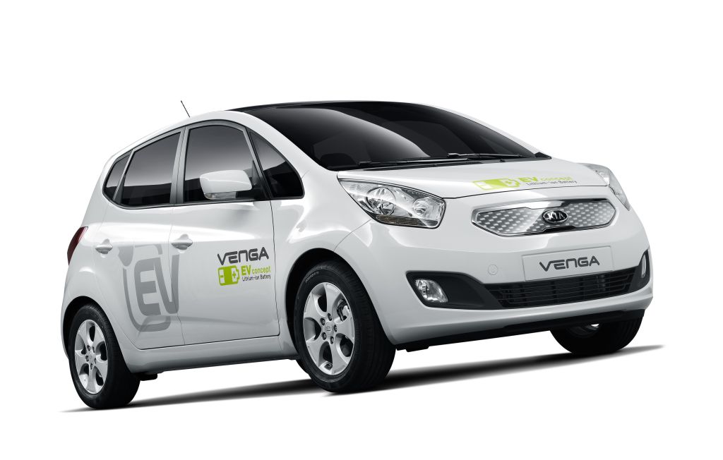 The Venga EV concept car is identical to the regular Venga B-segment MPV but features an electric motor producing 80 kW and maximum torque of 280 Nm. Venga EV is capable of accelerating from standstill to 62mph in 11.8 seconds, and reaching a top speed of 87 mph.