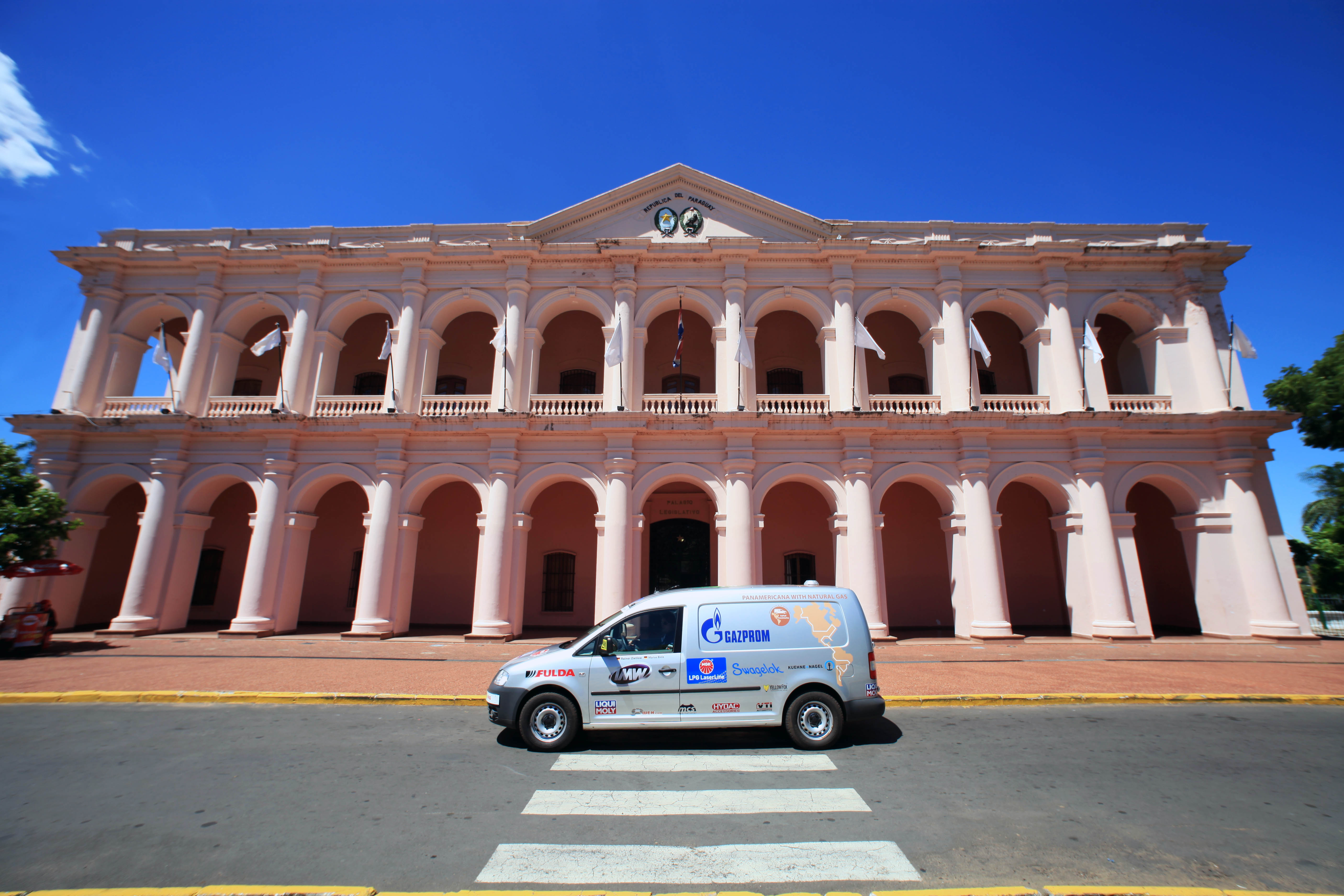 The starter's gun fired on January 2, 2010, in Rio Grande/Argentina at the southernmost natural gas fuel station in the world. Zietlow and his team plan on reaching Barrow, Alaska on April 2, 2010, at the world's northernmost natural gas fuel station. Zietlow stops in Los Angeles to present his trip so far and the VW Caddy Maxi EcoFuel, the new “natural gas long-distance champion.”