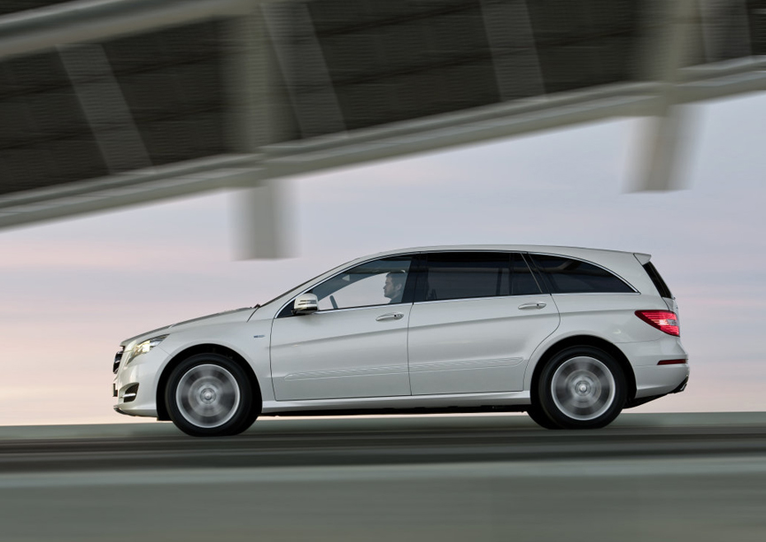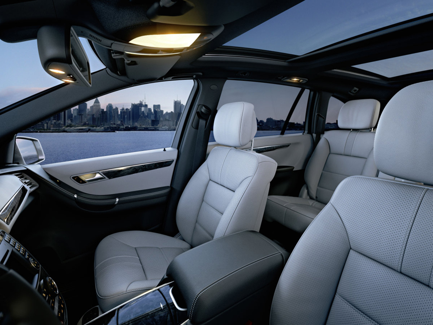 NEW YORK - March 29, 2010: One look is all it takes to see that the new MY2011 R-Class conveys a new level of assertiveness, underscoring the unique personality of this multi-talented vehicle. The completely redesigned front end completely transforms its overall appearance, taking its inspiration from Mercedes-Benz sedans and SUV models. Alongside its fresh exterior, the inner values of the redesigned MY2011 R-Class also speak for themselves. These include the spaciousness of a luxury SUV, as well as the safety, style and exclusivity of a Mercedes-Benz sedan.