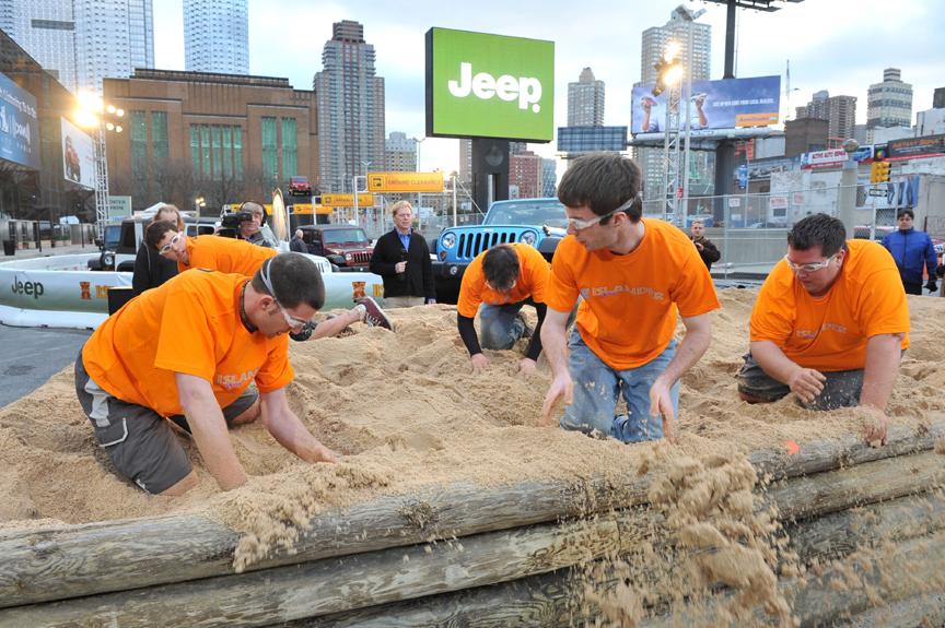 This morning, at Camp Jeep, the large interactive, outdoor Jeep display at the New York International Auto Show, all five contestants dug in a giant sandbox, built specifically for the New York show, to find the golden Jeep Tiki. Joel Lounds, from Bonita Springs, Florida was the first person to find it, winning an all-new 2010 Jeep Wrangler Islander.