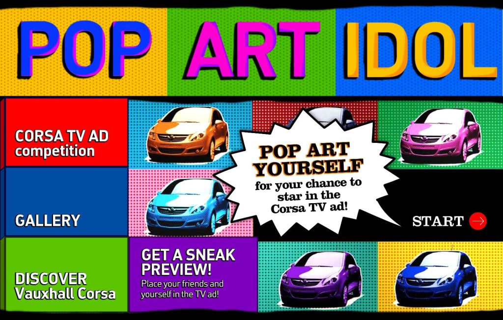 Corsa is launching a national competition offering one lucky person the chance to have themselves featured in full pop art glory on the gallery wall of the latest Pop Art inspired Corsa TV commercial. To Pop Art your image and enter, just go along to the Corsa Facebook Fan page www.facebook.com/vauxhallcorsa, accessible from your PC, Mac or iPhone. There, you can Pop Art your image and drop yourself onto the gallery wall, post it on your own page and even pass it on to other Facebook friends and get them to Pop Art themselves too.