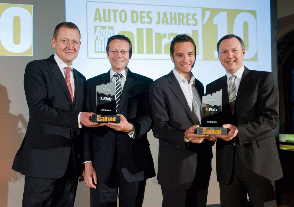 INGOLSTADT, GERMANY – April 14, 2010: It was a double win yet again for Audi with two models voted “All-wheel drive car of the year” for the fifth time. Readers of Germany’s “AUTO BILD ALLRAD” voted the Audi A4 quattro and the new Audi A8 top of their respective categories. The award ceremony took place during a press conference on the eve of the AMI Leipzig.