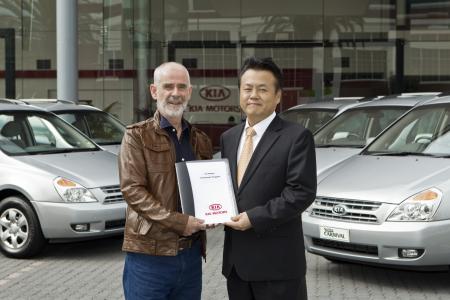 The Kia Grand Carnivals were handed over to Meals on Wheels CEO Les MacDonald by Kia Motors Australia CEO Mr MK Kim at Kia's Sydney based head office.