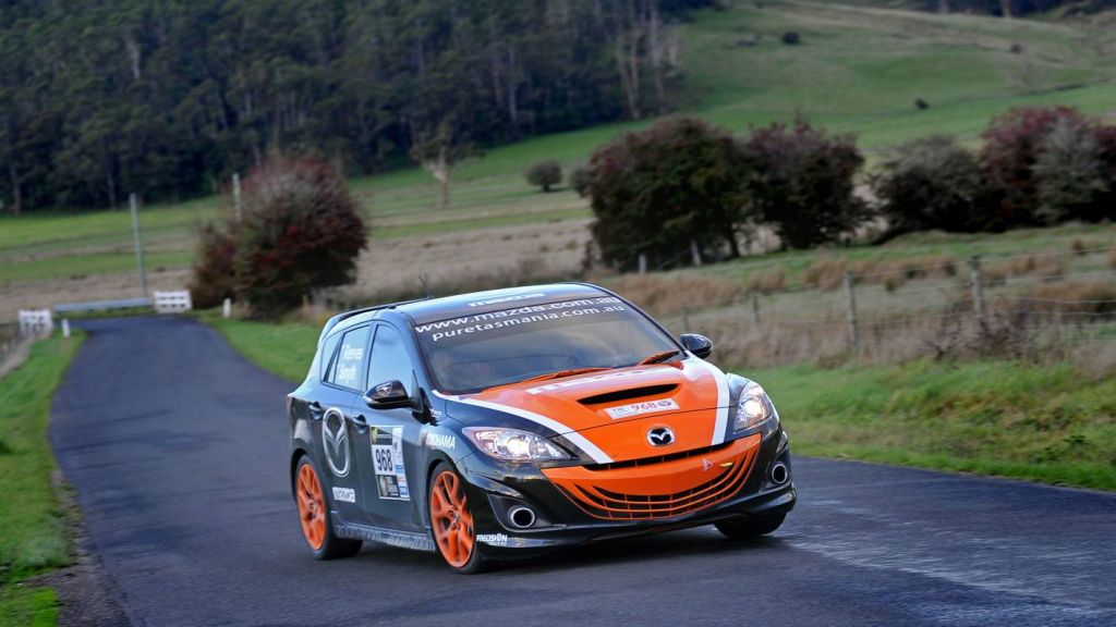 After lunch the stages dried up and it was on the final stage of the day, the 33km Rinadeena snaking into Strahan, where the Mazda3 MPS pulled almost a minute on Evans and 21-seconds on the Showroom-leading Mitsubishi Evo IX of Tony Warren.