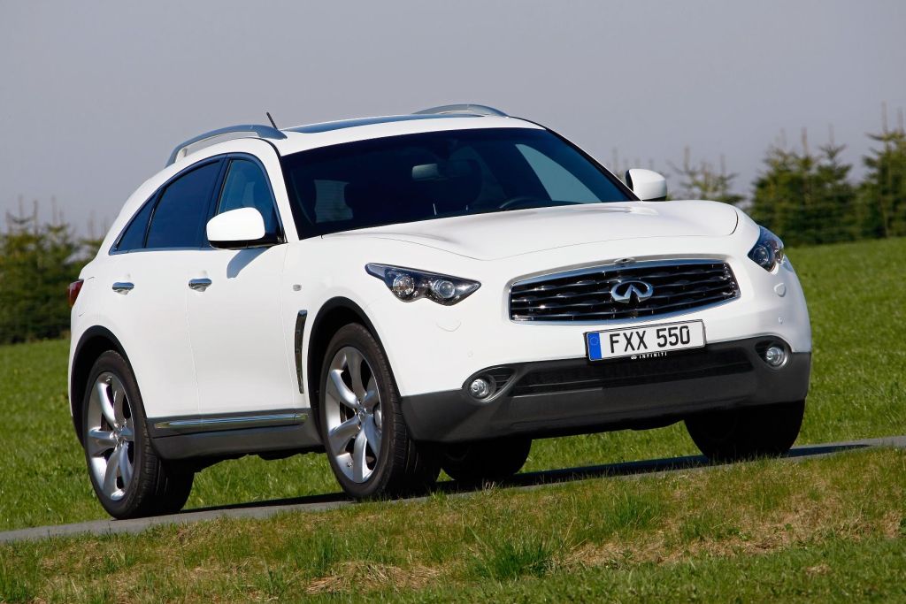 ROLLE, SWITZERLAND - May 7, 2010: The Infiniti FX, one of the sportiest driving – and certainly the sportiest looking – large crossovers on the market is now available with a sporting new engine under the bonnet. A diesel. This isn’t the only first for Infiniti in Europe because with the new engine comes the availability of new safety technology: Forward Collision Warning and Lane Departure Prevention.