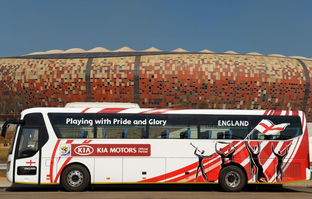 Kia Motors, which is an Official Automotive Partner of the 2010 FIFA World Cup South Africa™, is supplying 207 official vehicles from its wide-ranging model line-up: the new Sorento SUV, Soul urban crossover vehicle and the spacious Sedona MPV. In addition to its own vehicles, Kia is supplying a fleet of Kia-liveried buses, including the England National Team Bus, which are scheduled to provide 840 ‘bus days’ of transportation.