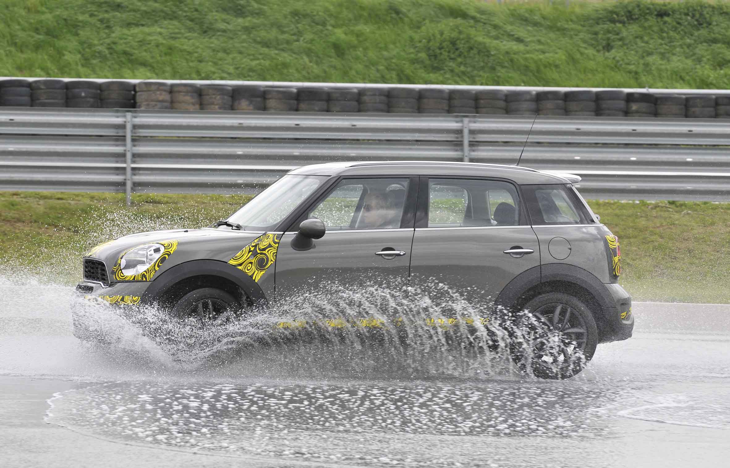 What is interesting is the behaviour of the All4 system. Under normal circumstances it drives 50/50 front and rear wheels of the Countryman and the torque can be sent to the rear wheels up to 100 per cent. The system reacts quickly and precise to the changing surface (lots of water, or less). But when you are entering a fast bend and have to lift the throttle, all-wheel-drive changes into front wheel drive. That makes drifting only possible by braking and applying more gas, but then the car gets a little unpredictable.