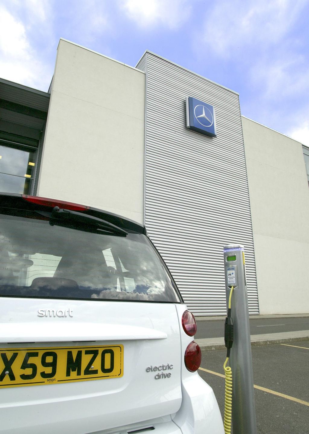 MILTON KEYNES, UNITED KINGDOM – Jun 3, 2010: Mercedes-Benz and smart are preparing for the widespread uptake of electric vehicles (EVs) in the UK by beginning the installation of recharging points across their dealer networks. So far 20 Elektrobay recharging units, produced in the UK by Brighton-based Elektromotive, have been installed at seven locations as part of a pilot project, and further expansion of the initiative is planned later this year.