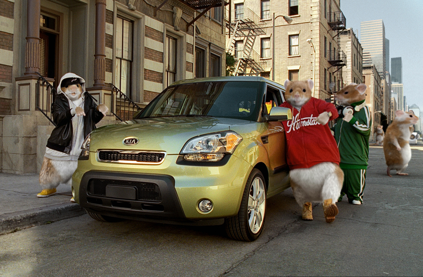 Created by David&Goliath, the Soul ad depicts city and suburban streets inhabited exclusively by hamsters who mindlessly run in place inside their exercise wheels until a Molten Red Kia Soul pulls up to a stoplight and the passenger window rolls down to reveal a trio of paw-tapping, music-loving hamsters who have discovered "A New Way to Roll."
