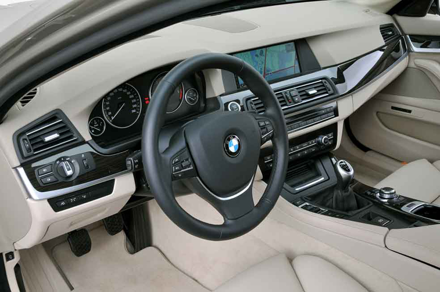 Right from the start in 1991, the Touring has been equipped with self-levelling technology on the rear axle and so is the new 5 Touring. The station wagon benefits from the new suspension technology used for the sedan, and that has been tuned for the extra weight in the rear. All other systems that we know of the 5 Series sedan are either standard of optional on the Touring. That makes this model again a car that provides "Freude am Fahren" (Joy of Driving) combined with a lot of practicality and sophisticated looks. Its roomy interior is as nicely executed as in the sedan. But I do have one criticism: using the stick shift shows that the center console is too high for a person of my size. Every time I changed gears, my elbow hit the console, forcing me more or less to move my arm between my body and the back rest of the seat, which is not comfortable.