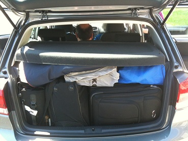 The next day it was time to put the carrying capacity of the hatchback to the test. 4 adults, two BIG bags, a few smaller pieces of luggage plus various and sundry garment bags and other road trip paraphernalia...and as you can see in the picture it all fit in, it did take some creative packing but did comfortably carry the four of us and our luggage from the green hills of Long Island to the wilds of Brooklyn...wow.