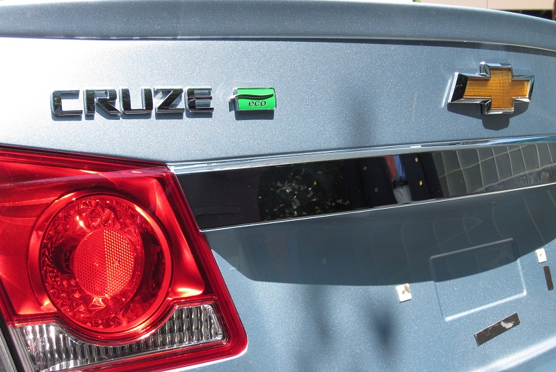 Chevy…yes, I’m allowed to say Chevy …claims the Cruze to be the first compact to get 40mpg. This is achieved by using ultra-low rolling resistance tires, lightweight wheels and aerodynamic devices including “aero shutters” behind the grille that close above 35mph and reopen as speed falls below that point. A lower front lip spoiler and rocker trim also aid the aero improvements.