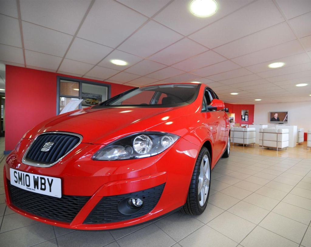 MILTON KEYNES, UNITED KINGDOM – Aug 18, 2010: With its new cars sales flying high and market share running at an all-time record, SEAT is seeing its stock rise still further among ambitious dealers keen to grab a slice of the Spanish car maker’s successful formula.
