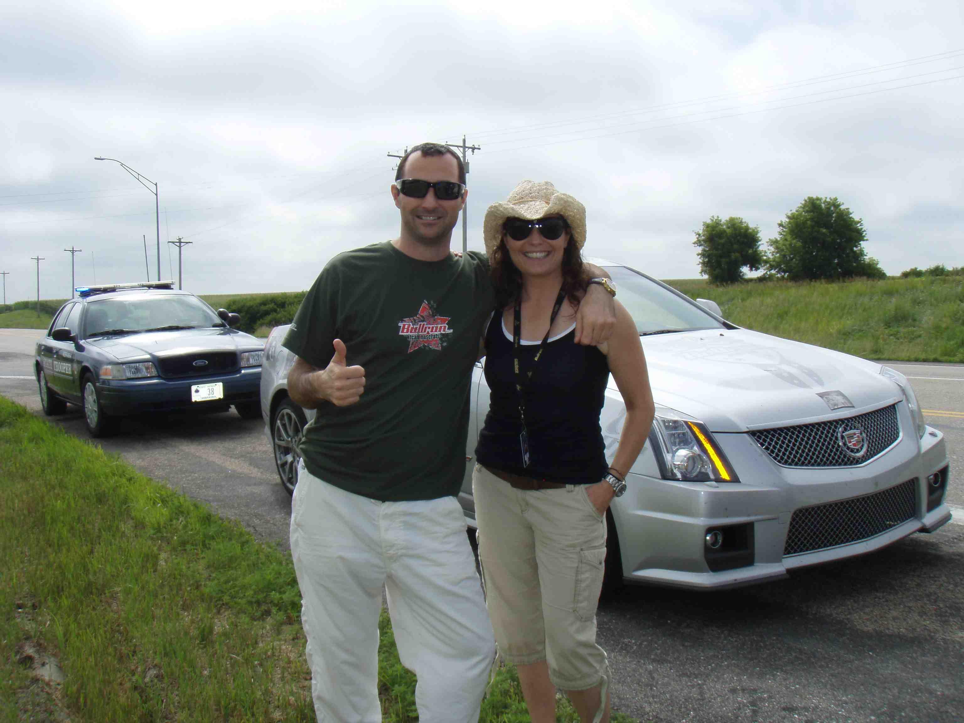 Delayed by a business call, my co-driver is nowhere to be found as the flag drops and teams depart at 8am sharp next morning. Not what you’d call great timing. In an effort to whittle our 20-minute deficit, I push the Caddy’s gas pedal further and further towards the floor. The disadvantage of lagging behind the pack is the maelstrom it leaves in its wake that you’ve yet to pass through. The advantage is the ability to swap text and, now, Twitter, updates - “blue charger hiding under the bridge at mile marker 255” – to aid in the chase. Alas, as you might guess, this is a far from perfect plan, as becomes quickly apparent when our radar detector sounds the alarm and Officer Helton of Iowa County, IA clocks me at 101mph in a 70mph. Phrases such as “journalist”, “charity rally”, “11-99” foundation”, and even “General Motors” fall on deaf ears and he asks me to step into his car…but, thankfully, just so I can decipher my U.K. license for him! IA is a little bit richer courtesy of yours truly and we’re on our way.