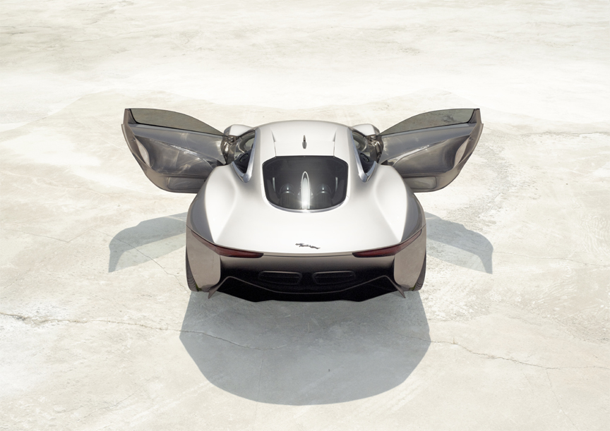 Shorter and lower than the current crop of supercars, its exterior design is about pure performance with a simple central fuselage surrounded by prominent wheel arches. Thanks to the packaging efficiencies provided by the absence of a conventional piston engine, the car's designers had maximum freedom in placing the mechanical components and creating the most elegant engineering package available.