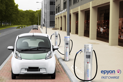 PARIS MOTOR SHOW, October 4, 2010; Epyon, a European leader in intelligent charging solutions for electric vehicles, today announced the Terra Combo Charge Post, a fast charging post that supports both AC and DC connection standards. The post is the first in the industry that allows vehicles with different charging standards to be charged at the same post simultaneously, making this station very cost-effective for utility providers, parking lots, local municipalities and petrol stations.