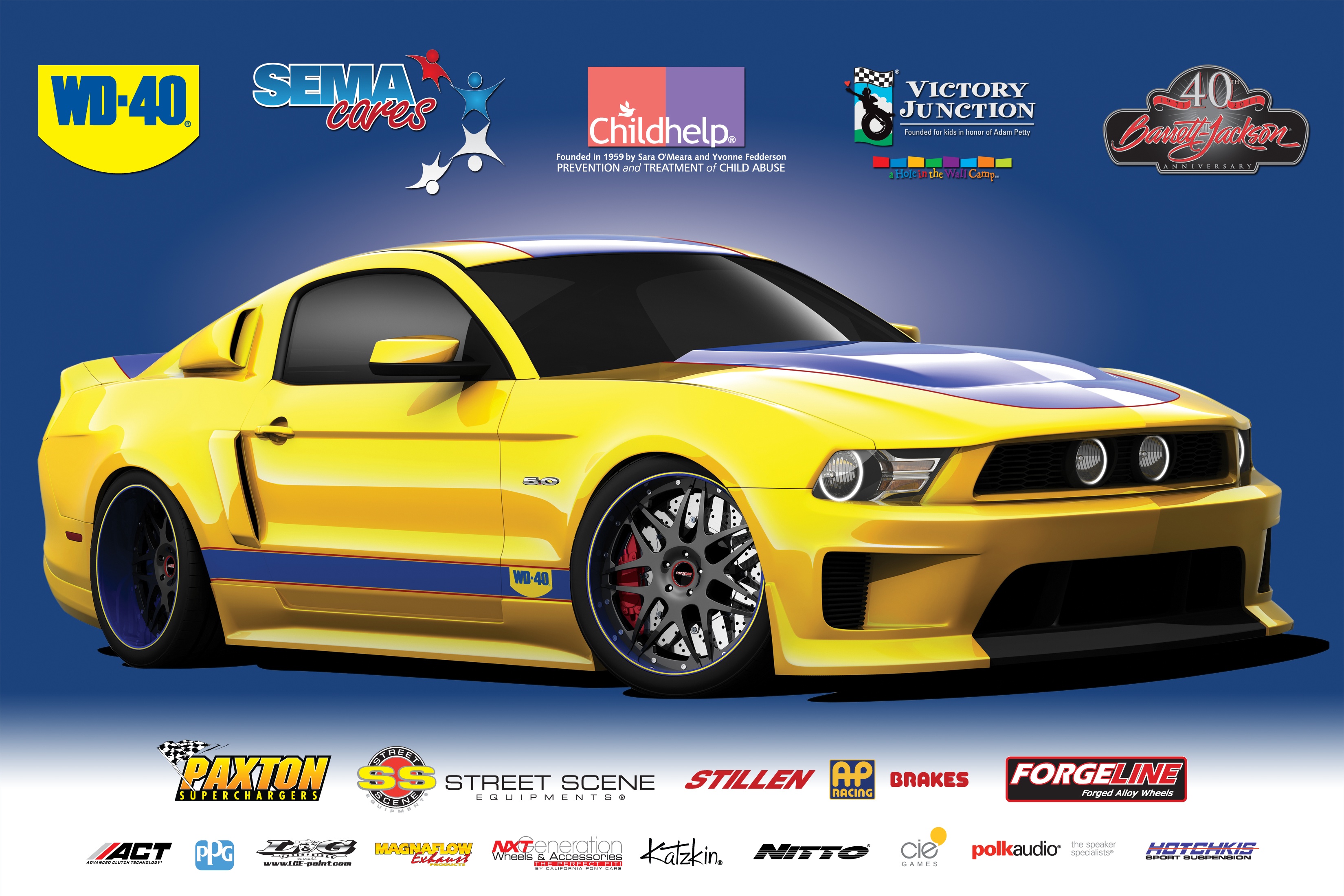 After debuting at the SEMA Show, the WD-40/SEMA Cares Mustang will appear at select West Coast auto-related events and then be auctioned off at the Barrett-Jackson Classic Car Show and Auction Jan. 17-23 in Scottsdale, Ariz. Proceeds of the sale of the vehicle will go to Childhelp®, an organization that provides services to abused and neglected children, and The Victory Junction Gang® Camp, which provides life-changing camping experiences to special needs and chronically ill children.