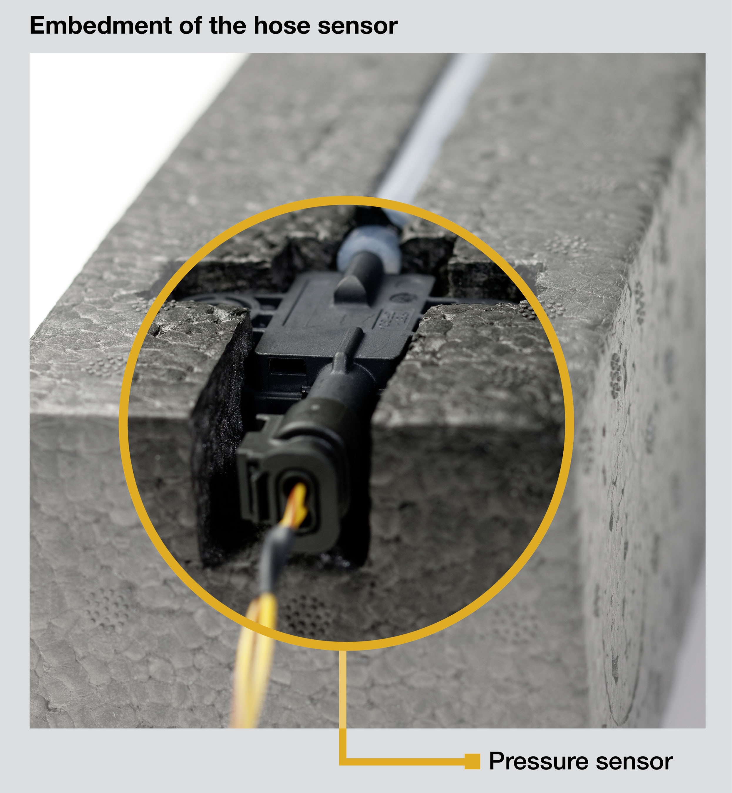 The crash sensor consists of a hose that is laid across the entire width of the car in its front bumper. The hose is situated directly behind the foam block that is fitted at the front of the vehicle to absorb energy. Standardized pressure sensors are installed at either end of the air-filled pressure hose. The same type of sensor is used to activate side-impact airbags. When a vehicle collides with an obstacle, the resulting pressure exerted on the hose through the front bumper and foam block creates a typical waveform that is detected by the two sensors at the ends of the hose and forwarded to an airbag control unit. Crash algorithms in the analysis software and speed information from the vehicle's information network enable the type of collision to be identified in a hundredth of a second. The signal relay time even allows conclusions to be drawn about the location of the impact, for example the front right-hand corner or the middle of the vehicle. This enables the rapid activation of protection systems, which are most effective in accidents in urban traffic with a pre-crash speed of no more than 34 mph and a crash speed of between 12 and 18 mph.