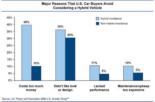 "Many consumers say they are concerned about the environment, but when they find out how much a green vehicle is going to cost, their altruistic inclination declines considerably," said Humphrey. "For example, among consumers in the U.S. who initially say they are interested in buying a hybrid vehicle, the number declines by some 50 percent when they learn of the extra $5,000, on average, it would cost to acquire the vehicle."