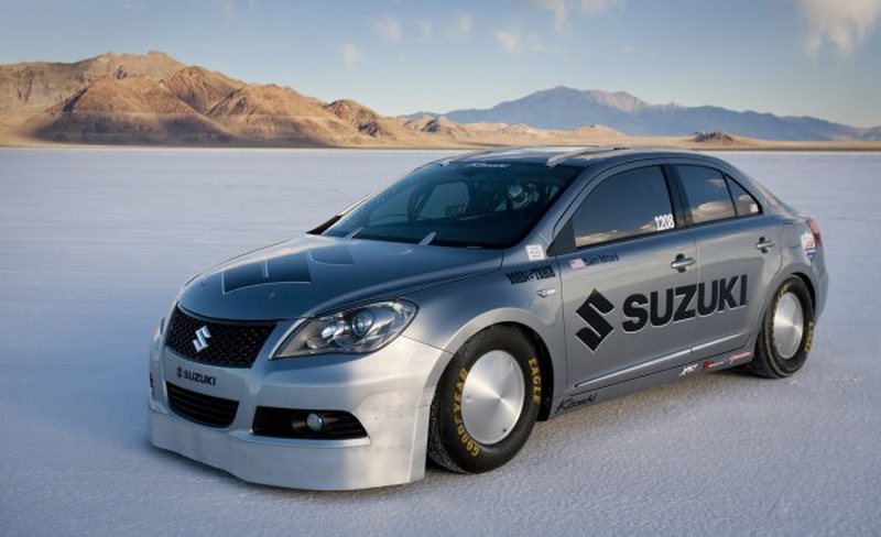 Piloting ASMC's modified 2010 Suzuki Kizashi Bonneville Special, Road & Track's Sam Mitani injected the Kizashi into the record books with his 203.720 mph run at this year's Bonneville Speed Week, exceeding the previous record of 202.301 mph. The 203.720 mph record was achieved by calculating the average of a two-way pass at 8:40 a.m. MT on August 18, 2010.