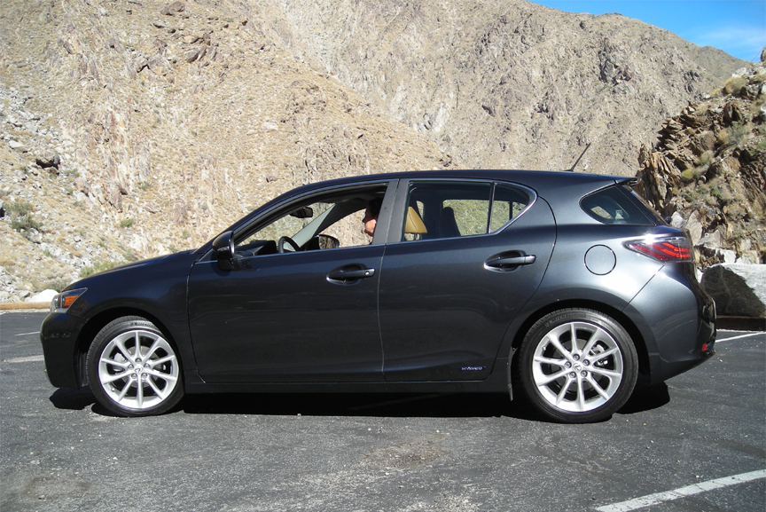 In the real world, all this computerized wizardry works remarkably well. When you swap Normal/EV/ECO Mode for Sport, you can definitely feel the difference on the fly. When the CT is running as a blue light special, the 3,130 pound hatchback behaves like a soul-less appliance, not demanding much attention, barely providing enough impetus to keep you awake. But swap that Mode switch to red, and the CT perks up like a thoroughbred waking from a nap. We found out just how good the CT’s reflexes are in red Mode during a two hour drive through the mountains ringing Palm Springs. Although the combined gas/electric motors of the CT make only 140hp, that output is adequate for sport driving thanks to the stiffness of the CT’s heavily reinforced and gusseted 64,000 PSI hi-strength steel chassis. Abetting platform stability is a nifty set of strut tower braces front and rear which contain hydraulic dampers within the brace. These 290 PSI Nitrogen Gas stiffeners insure the CT remains stable through severe bends.
