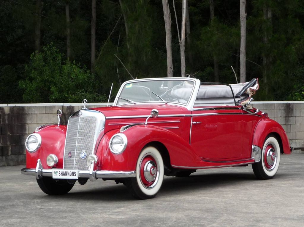 Powered by a 2.2 litre straight six cylinder engine producing 60kW, the stylish ‘Benz is one of just 1,278 two-door 220A Cabriolet models produced by Mercedes-Benz during 1952-‘53.