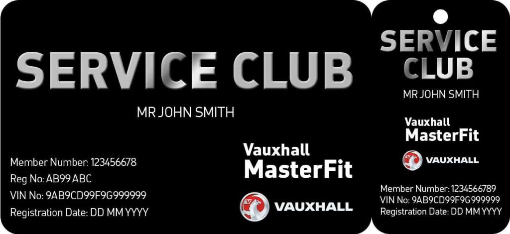 To receive your Vauxhall MasterFit Service Club card, log onto the Vauxhall Driver Centre http://www.vauxhalldriverscentre.co.uk/home and enter your details.