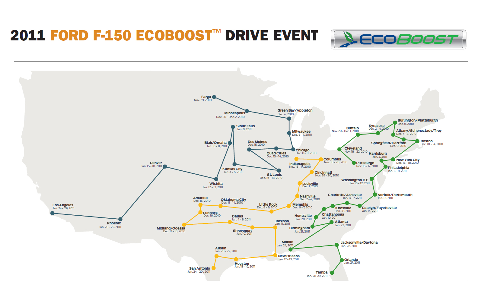 • Ford is taking the new 2011 F-150 with EcoBoost™ on a nationwide tour of