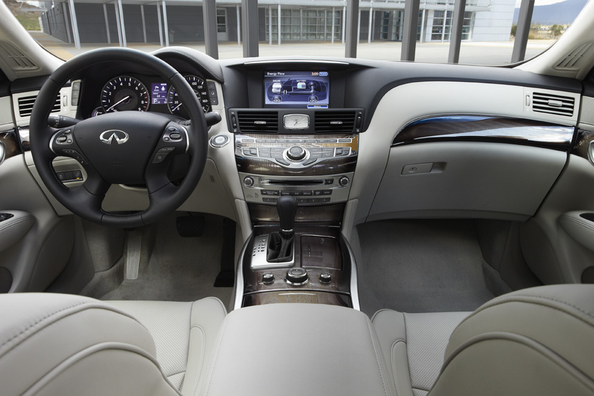 The M35h also embraces the essence of all things Infiniti style, performance, luxury, craftsmanship and technology. The Infiniti M's dramatic, sports styling is matched with a roomy, comfortable interior environment featuring standard leather-appointed seating, Japanese Ash wood trim or available silver powdered genuine White Ash wood trim, and available premium audio and climate control systems.