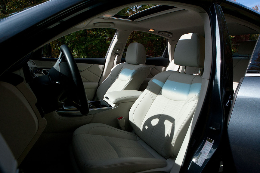 and the optional white ash silver-powdered wood trim infuses the interior of the new Infiniti M with a modern