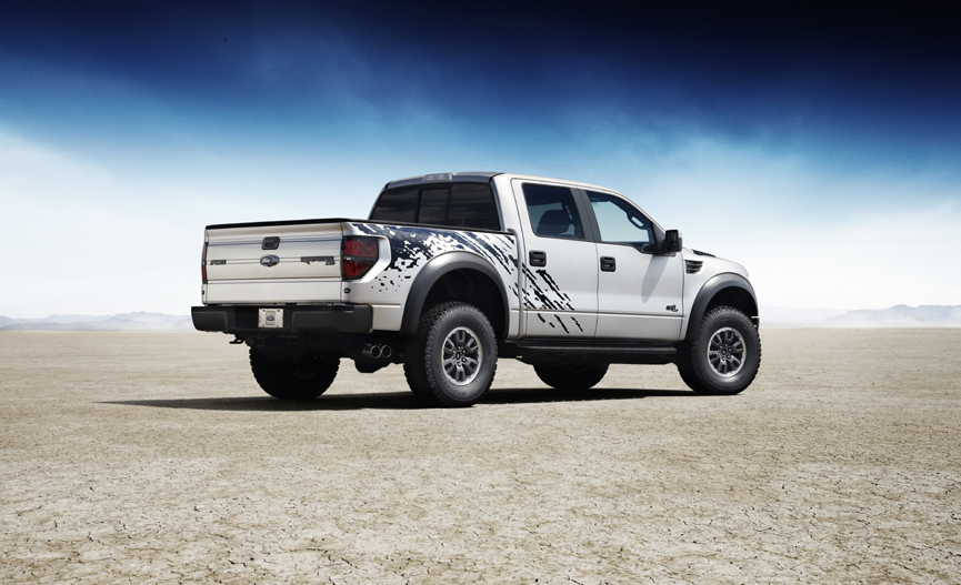 Raptor’s exterior also receives some new touches for 2011, in the form of an additional paint color – Ingot Silver Metallic. A new optional hood graphic adds a personalized and functional touch to F-150 SVT Raptor. Inspired by older off-road racing Ford Broncos, matte black accent graphics run along the hood.