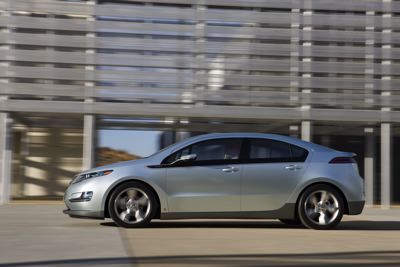 The vehicle offered in the charity auction was the first Chevrolet Volt available for sale, bearing the vehicle identification number ending in BU100002. It features a Viridian Joule exterior, Light Neutral interior with dark accents, Premium Trim Package, Rear Camera and Park Assist Package, and polished wheels. The auction also includes a 240-volt charging station and home installation.