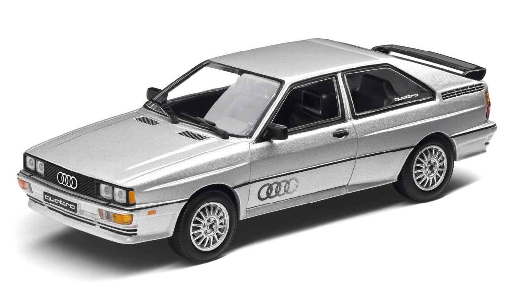 The 1:43 model Audi quattro is made from high quality die-cast aluminium and retains every detail of the original’s styling – from the four rings livery on the doors to the ‘quattro’ tags on the back passenger windows.