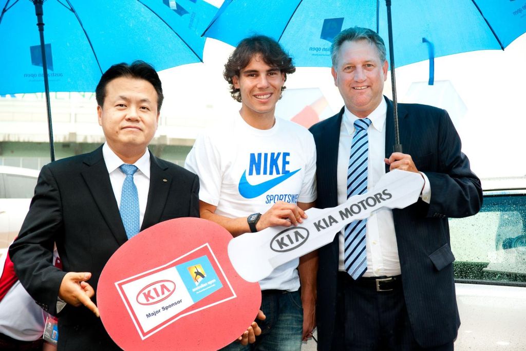Rafael Nadal – ranked world No 1 and Kia’s global brand ambassador was on hand with Kia Motors Australia’s President and CEO M.K Kim to hand the keys over to Steve Wood, Tennis Australia CEO