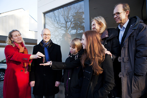 A-hus President Peter Mossbrant explains: "Our goal is to make low-energy wooden houses available to a broad market. More people should be able to live climate-smart - without compromising on comfort, function or design. We offer everything under one wellinsulated roof. In fact, we will start selling this type of house in the end of January 2011." The plans for the villa were drawn up by architect Gert Wingårdh. He has made the white house more energy - efficient and given it a more interesting appearance with the characteristic protruding framework around each window, the wind-catcher in the entrance hall and the large integrated veranda alongside the living room. Together with the black roof and the south-facing solar panels, the house has a truly unique personality all on its own.