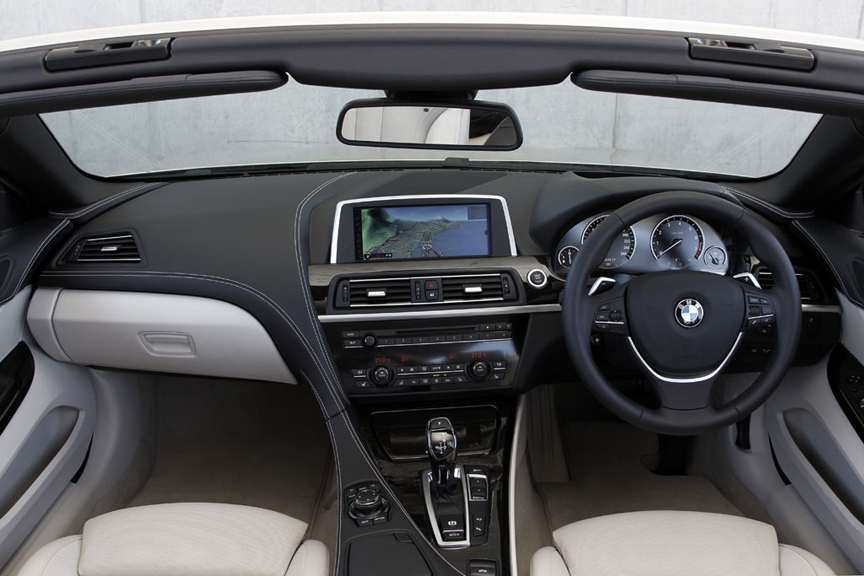 Another new feature in the 6 Series Convertible is the large display that is directed towards the driver under an angle of 6 degrees, which still provides a good view for the passenger, too. Important is that the 7-inch screen is free standing, which made it possible to lower the dashboard by about an inch and also lower the seat. Consequently the roof line could be lowered by 0.31 inch, which helps create the low and wide stance of the new 6 Convertible that grew by nearly 3 inches in length and 2 inches in width.