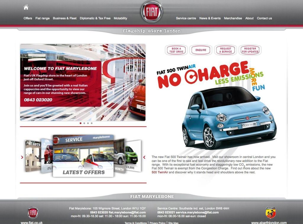 The new site (www.fiatmarylebone.co.uk) provides an easy-to-use menu of the top services offered by the city flagship showroom and also provides a host of useful information about Fiat and Abarth cars, and general news about the two popular brands.