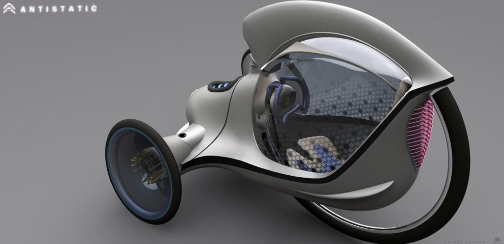 Heikki Juvonen’s E-3POD Antistatic was chosen as the best overall design by representatives from Citroën’s Style Centre and Electric Vehicle Development Team. His single-seat creation is a bold and engaging take on an urban three wheel electric vehicle. The distinctive, aerodynamic styling features two smaller wheels at the front with the driver sitting inside a larger third wheel with an innovative hub-less design. As his prize, Heikki receives a six month employment contract to work at the prestigious PSA Design Centre in Paris.