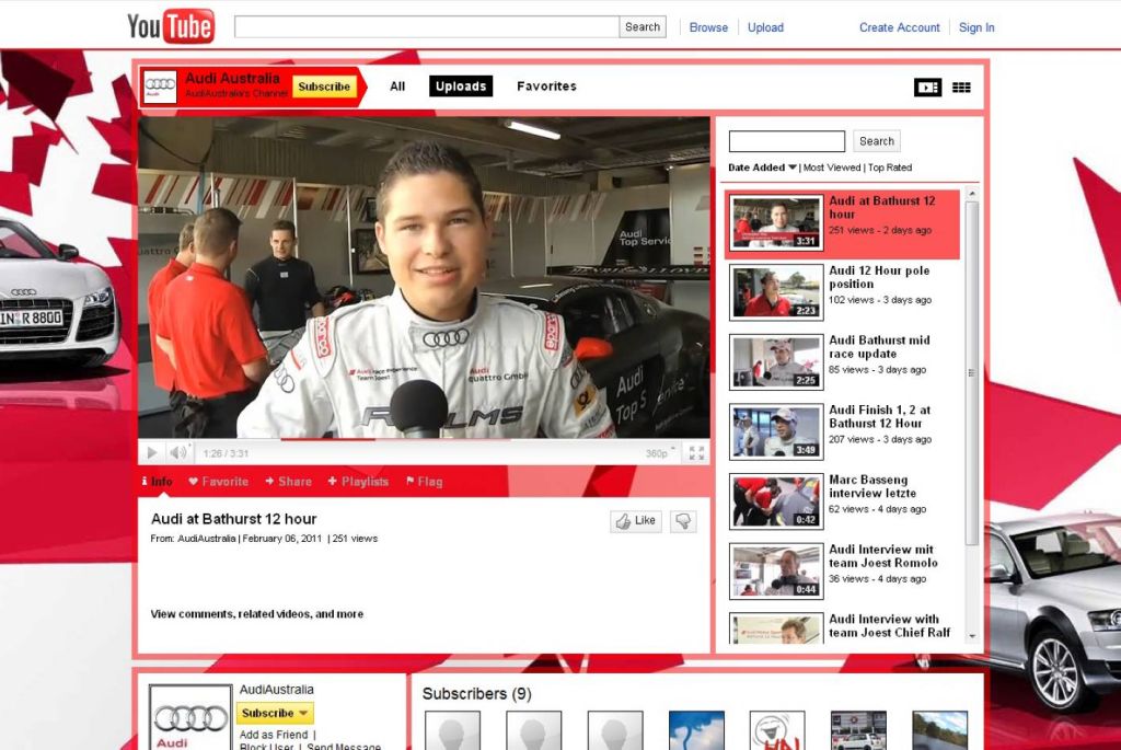 ZETLAND, AUSTRALIA – February 10, 2011: Audi Australia has gone live on YouTube with a dedicated site featuring videos from the world of Audi: