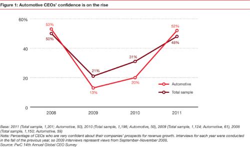 Confidence Rises Among Global Automotive CEOs About 2011 Revenue Growth, According to PwC's 14th Annual Global CEO Survey