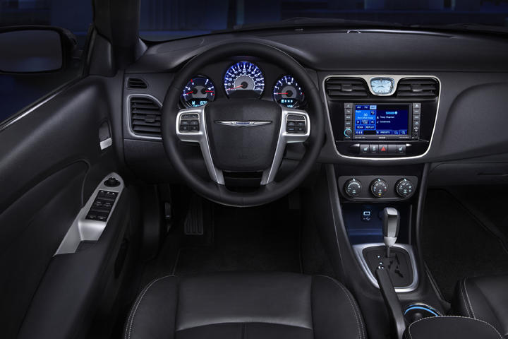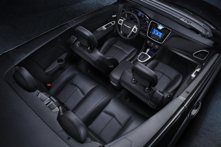 The 200 Convertible’s standard safety features include: advanced multi-stage front passenger air bags, front-seat-mounted side air bags, electronic stability control (ESC) with brake assist and traction control, four-wheel anti-lock brakes (ABS), Brake Override, active front-seat head restraints, Lower Anchors and Tethers for Children (LATCH) child seat anchor system, remote keyless illuminated entry, SentryKey engine immobilizer and security alarm.