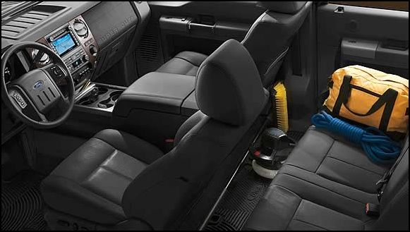 Towing capabilities range from 11,800 pounds up to 16,000 via hitch and up to 24,400 pounds with a fifth-wheel, which for the first time is a factory-installed option. Payloads can be from 2350 pounds to as high 6520. Also new on the turbo-diesel is Ford’s heavy-duty 6R140 TorqShift six-speed automatic transmission. Passengers commented to us about how quiet the cabin was during driving.