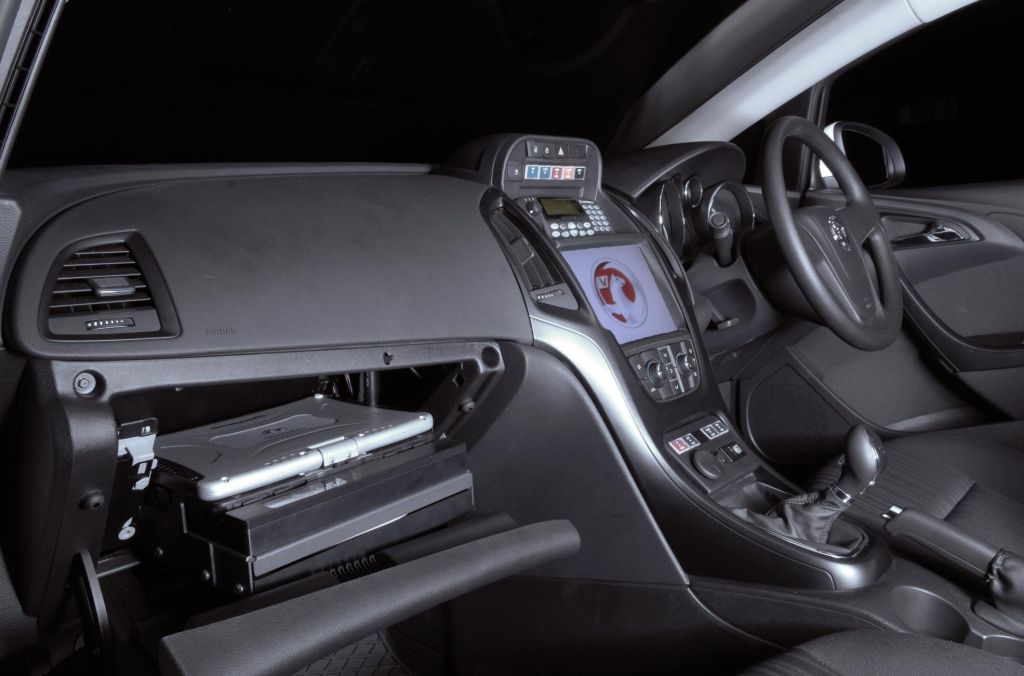 The Toughbook fits into a docking station, which is mounted in the glove box of the Astra. The Toughbook can be easily removed and this allows the laptop screen to be viewed in both upright and downward positions. When out on the road, officers can use it to access the same systems that are available in the office, so they can be alerted to incidents as soon as they are reported, and can therefore respond in the quickest time possible. The Toughbook is linked to an 8.4” high resolution touch screen positioned in the Astra dashboard. Not only is the screen located in easy reach of the driver or passenger, it’s mounted flush in the dash to meet all legal and safety regulations.