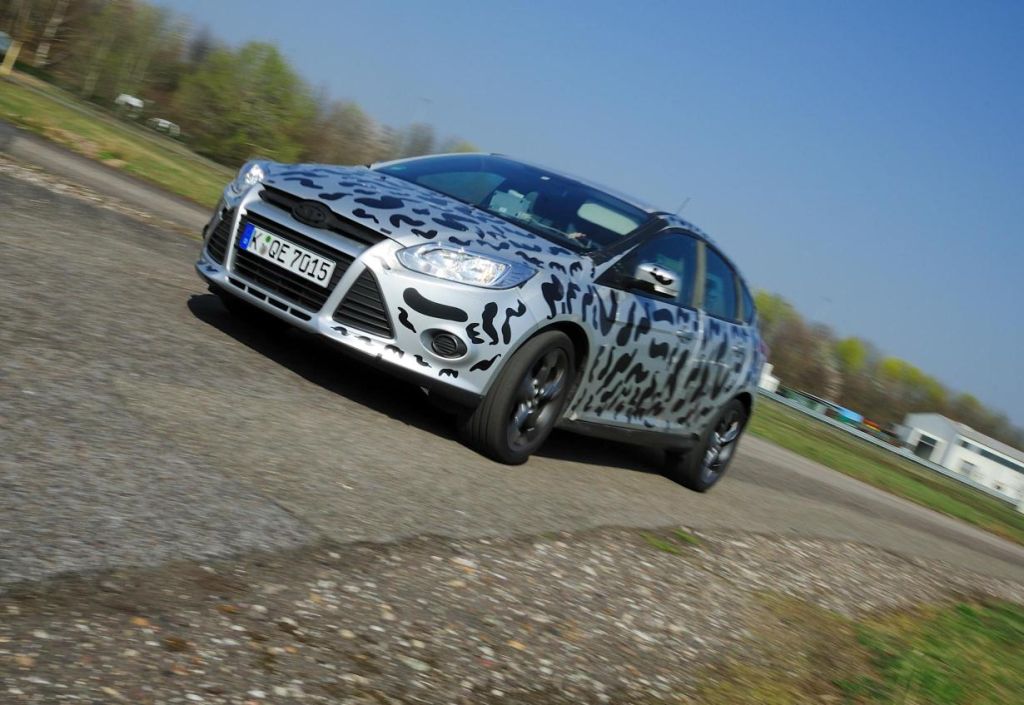 BRENTWOOD, UNITED KINGDOM – May 11, 2011: If a new Ford Focus with an eye-catching paint job, ground-hugging suspension, big wheels and tyres and a tell-tale central rear double exhaust passes you on the autobahn, chances are you have seen one of the development prototypes for the new high-performance Focus ST launching next year.
