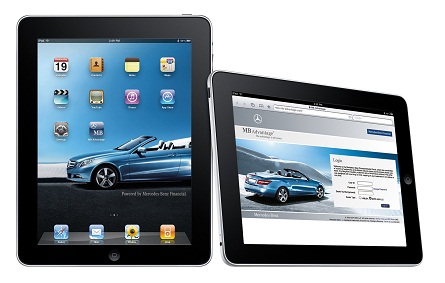 Not intending to put the cart in front of the horse, MBFS’s Mobile Technology Strategy begins right in the dealer showroom during the shopping and purchase process. Mercedes sales representatives are iPad equipped. Rather than sitting at a sales office desk with a customer they can walk around the showroom from model to model and pull up information on the iPad for immediate viewing and sharing with the car-shopper.