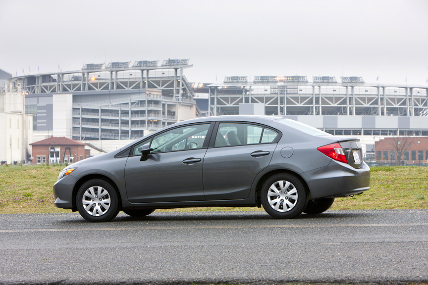 The redesigned Civic LX's score dropped a whopping 17 points to a mediocre 61 from the previous generation's very good 78. It scored second-to-last in CR's ratings of 12 small sedans, followed only by the recently redesigned Volkwagen Jetta. Consumer Reports' testers found the 2012 Civic to be less agile and with lower interior quality than its predecessor. It also suffers from a choppy ride, long stopping distances, and pronounced road noise. On the positive side, the Civic provides decent rear-seat room, and it achieved 30 mpg overall, which gives it the second-best fuel economy in its class - behind only the Toyota Corolla's 32 mpg.