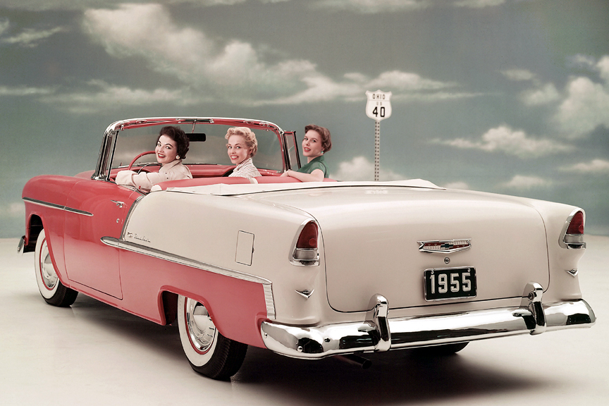 The all-new 1955 Chevy brought a renewed energy to the brand. Sleek "Motoramic" styling and a hot new 265-cid “Turbo-Fire” V-8 engine – first of the legendary small-blocks – made this Chevy an almost instant classic. Rock and roll music was just starting to shake up American culture, and the Bel Air was the perfect set of wheels for Saturday night cruising.